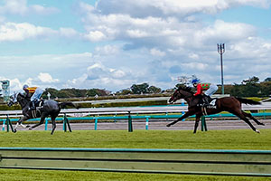 そしてまた、後肢と前肢の着地の間に馬体が宙に浮いているので、馬体の長さ以上にストライドを大きくできるのである。
